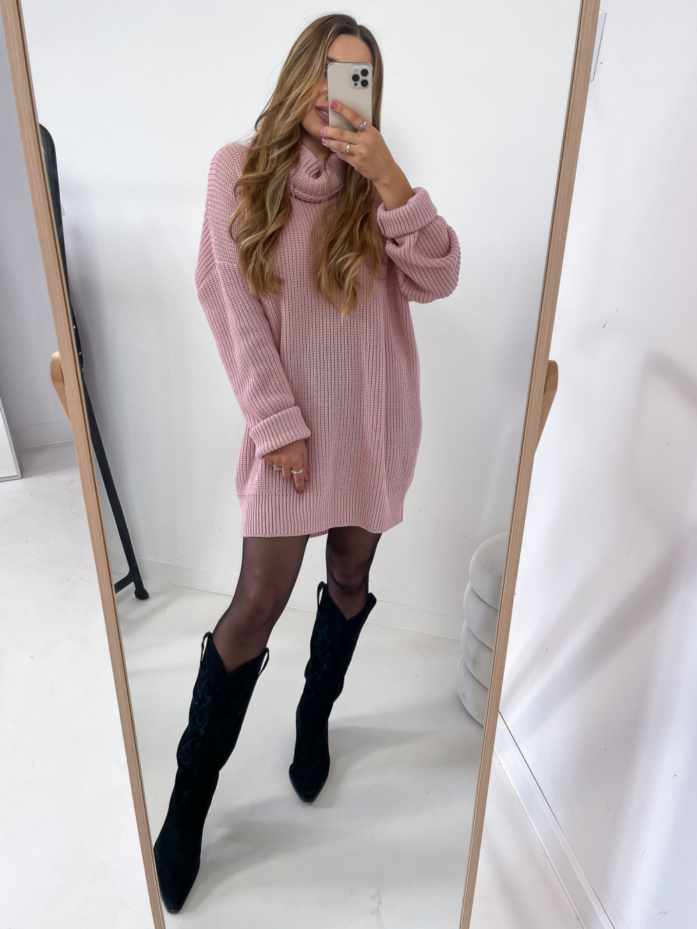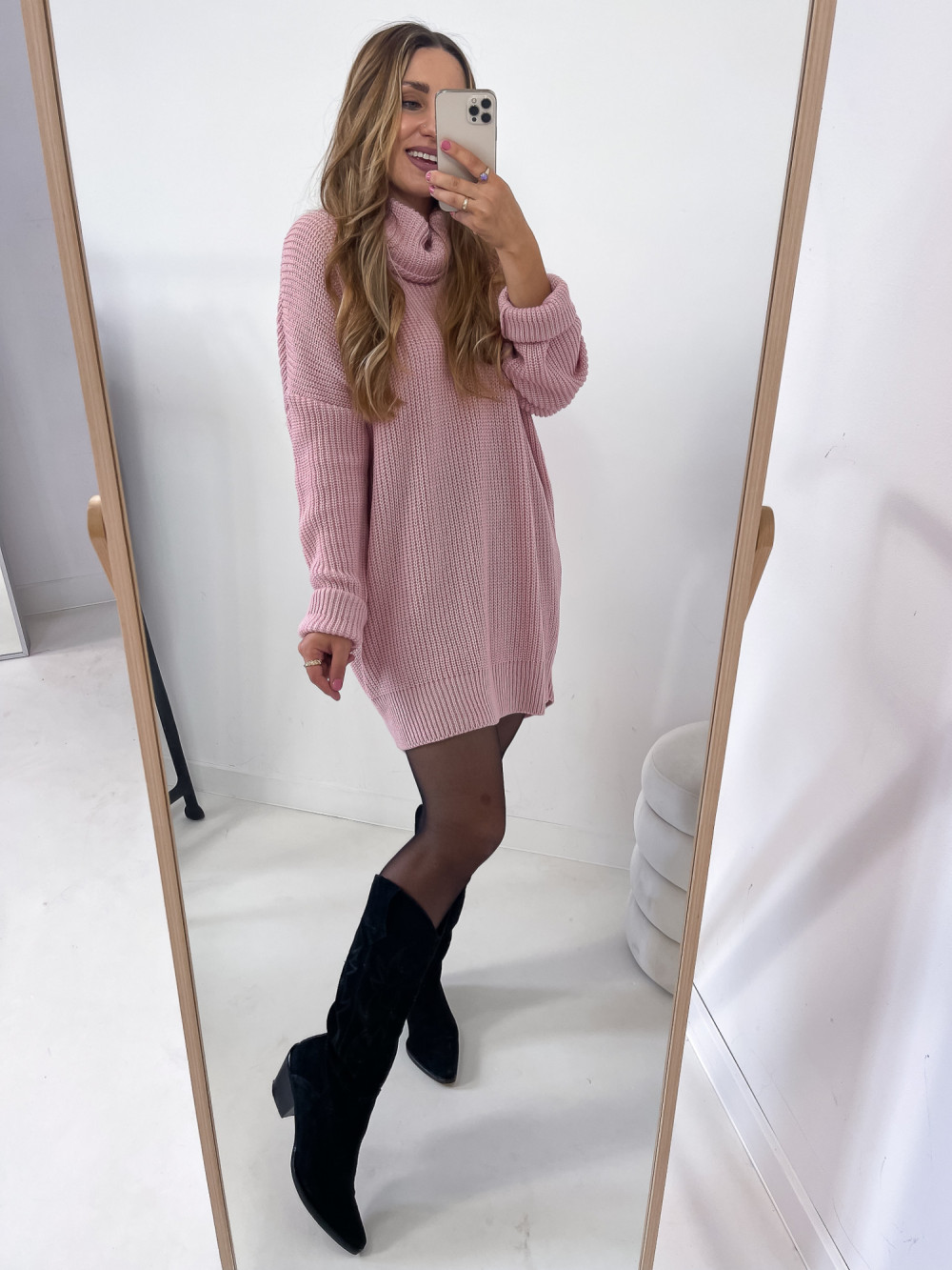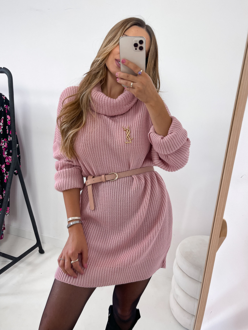 Sweterek o niezwykłym fasonie z golfem. Luźniejsze, szersze rękawki zakończone delikatnym ściągaczem.