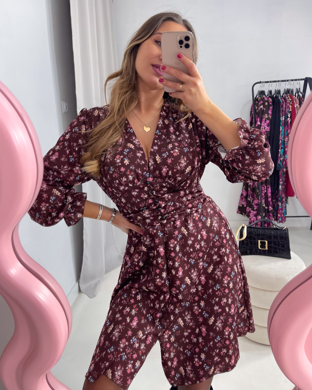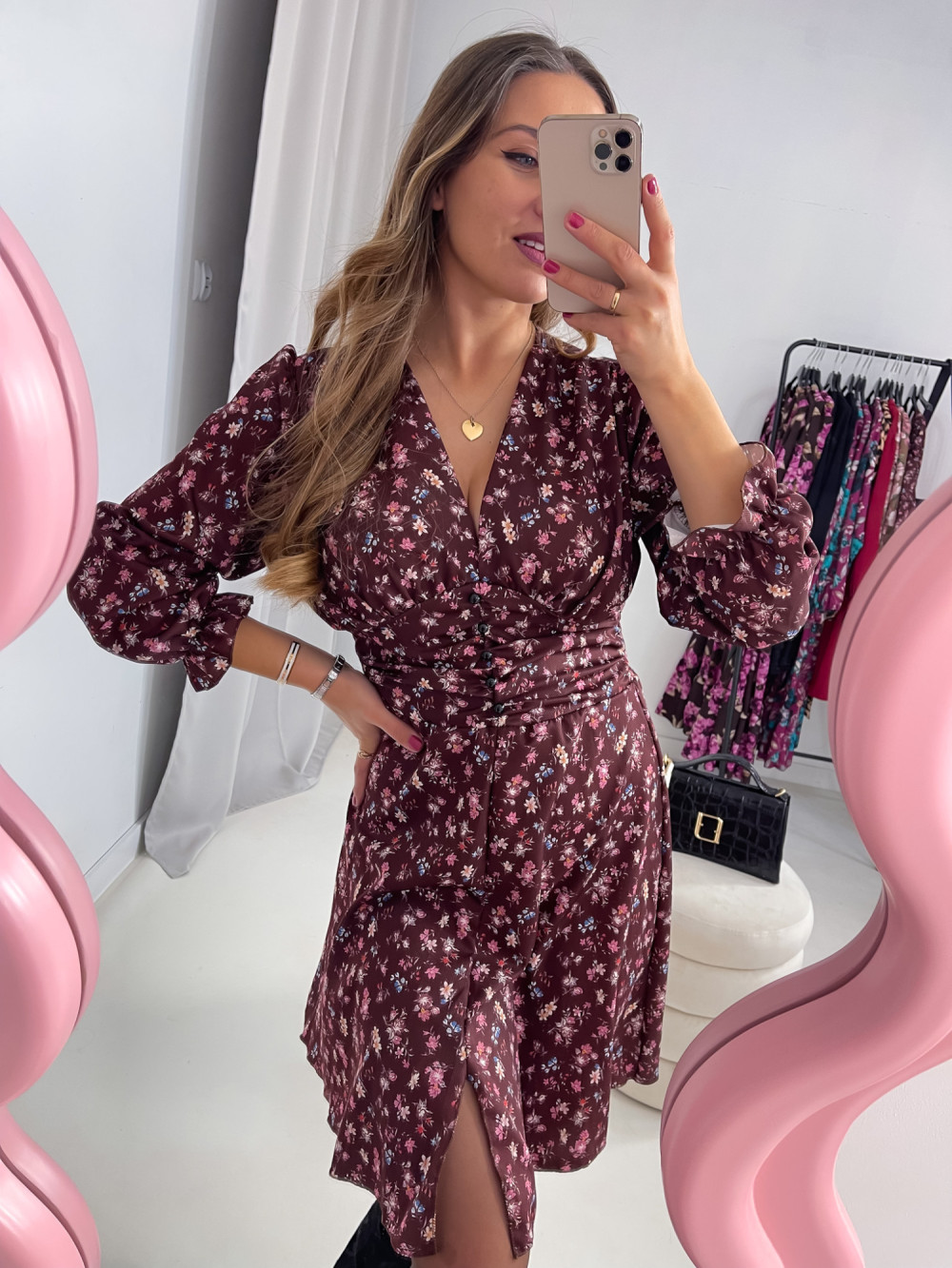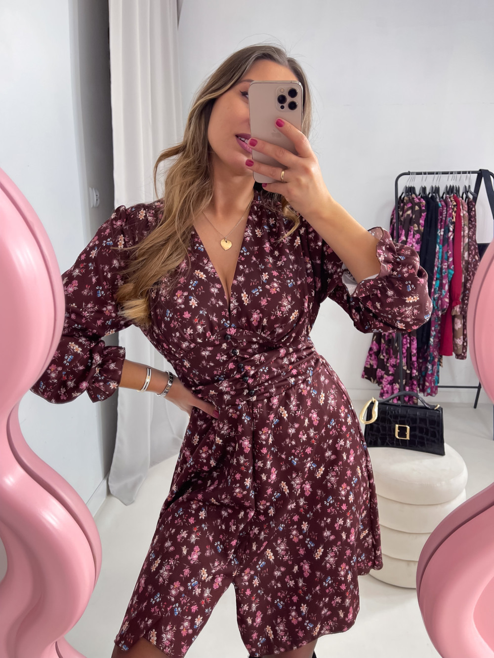 SUKIENKA KATE CZEKOLADOWA W KWIATY