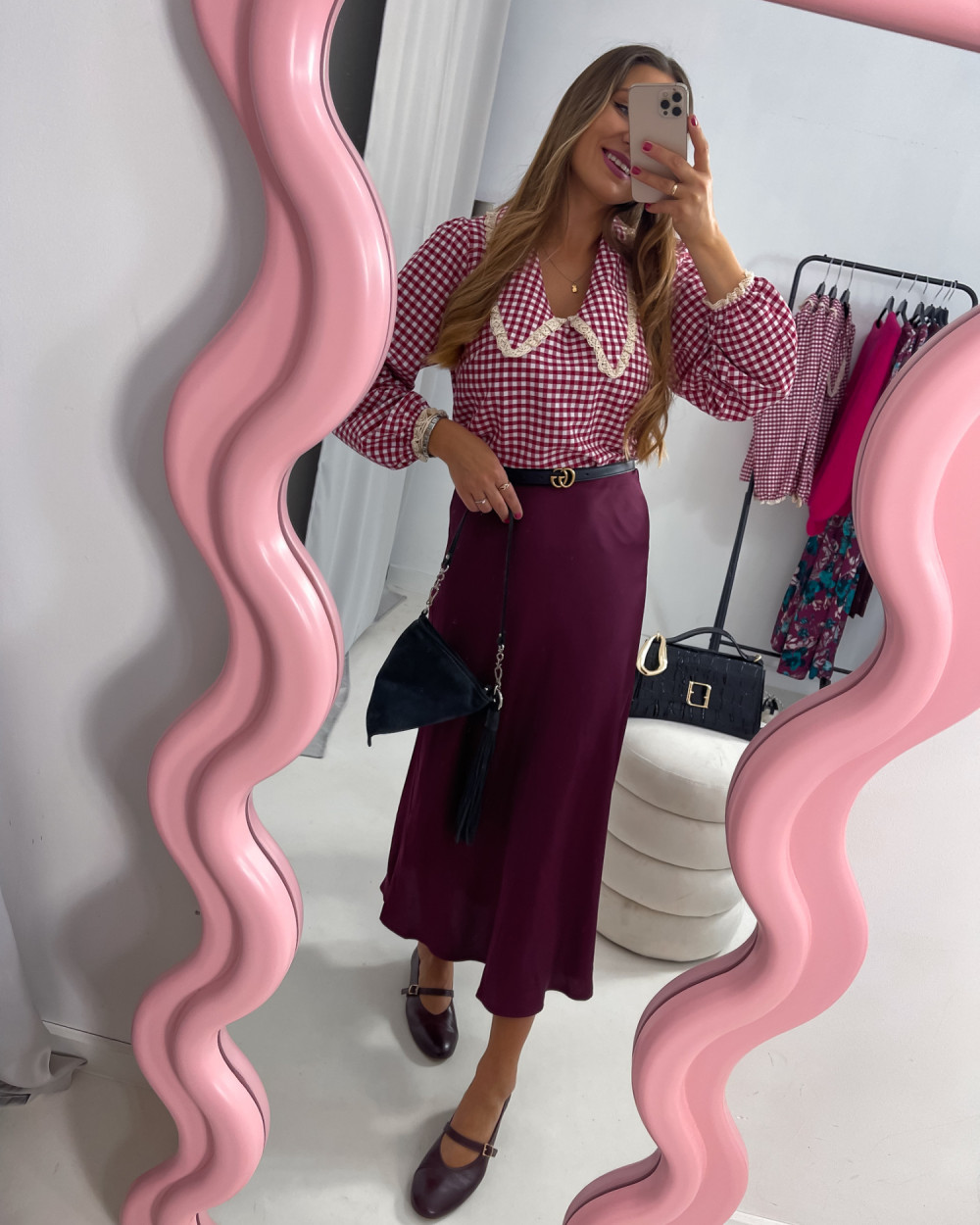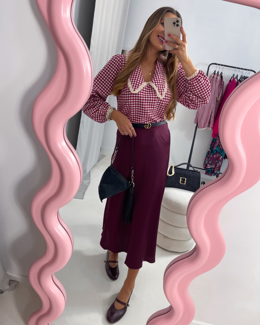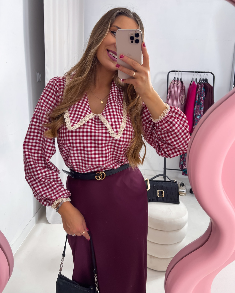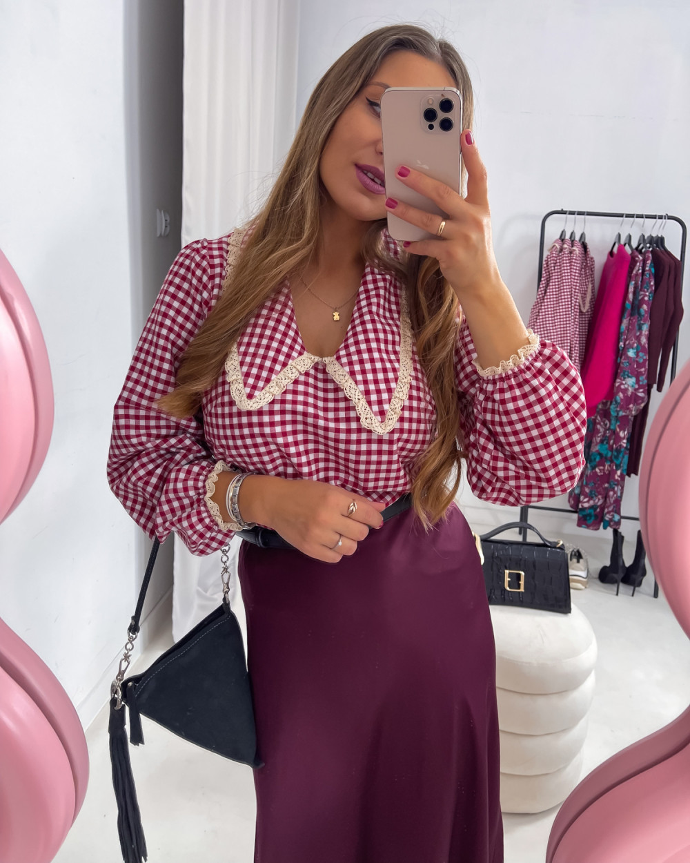 KOSZULA RITA Z DUŻYM KOŁNIERZEM CZERWONA W KRATĘ