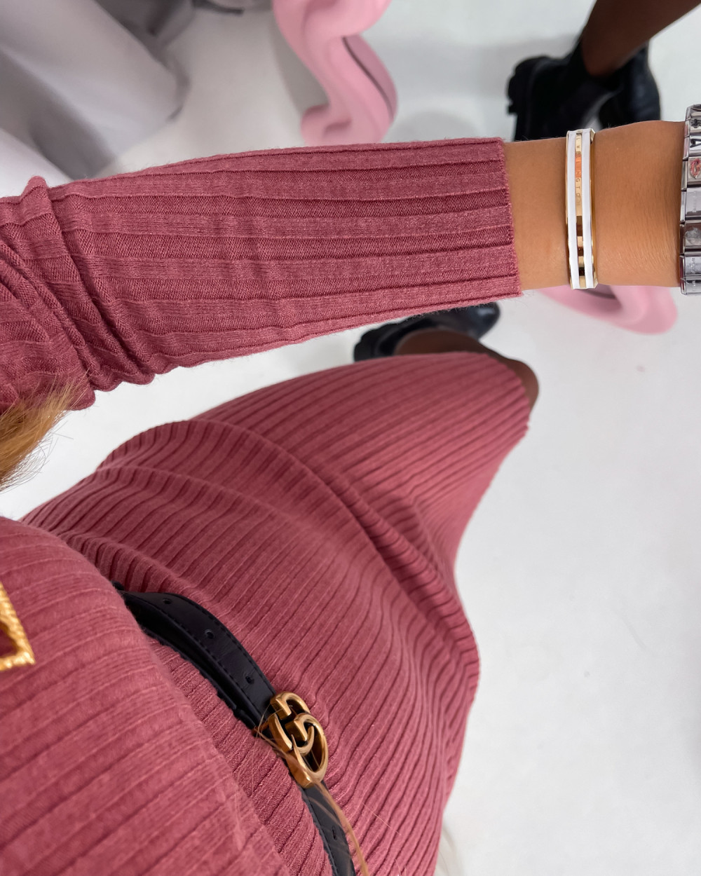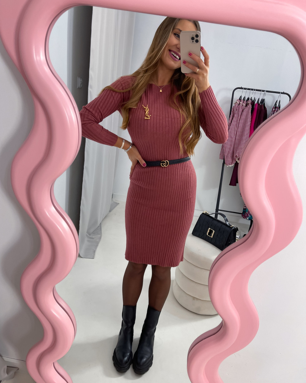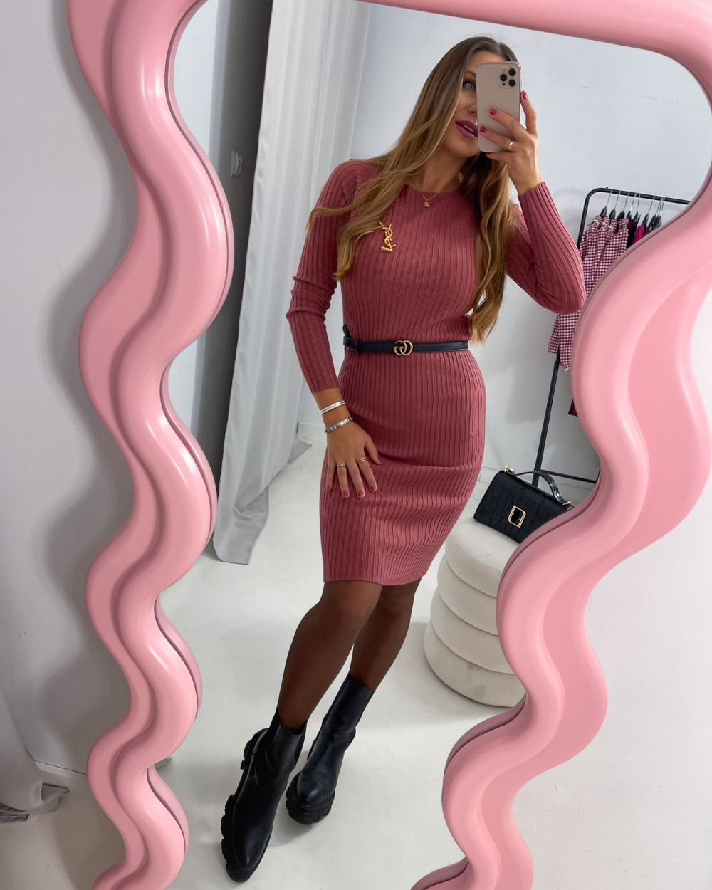 Dopasowana sukienka z lekkiej dzianiny w prążki z paskiem. Sukienka posiada okrągły dekolt. . Sukienka jest mocno elastyczna idealny na każdy rozmiar od XS do L. Model mocno się dopasowuje. Dostępna w sklepie internetowym CLARET w kilku kolorach.