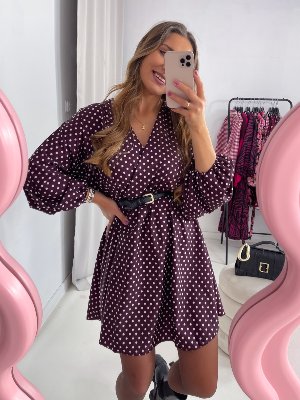 SUKIENKA ZITA ŚLIWKOWA W GROSZKI