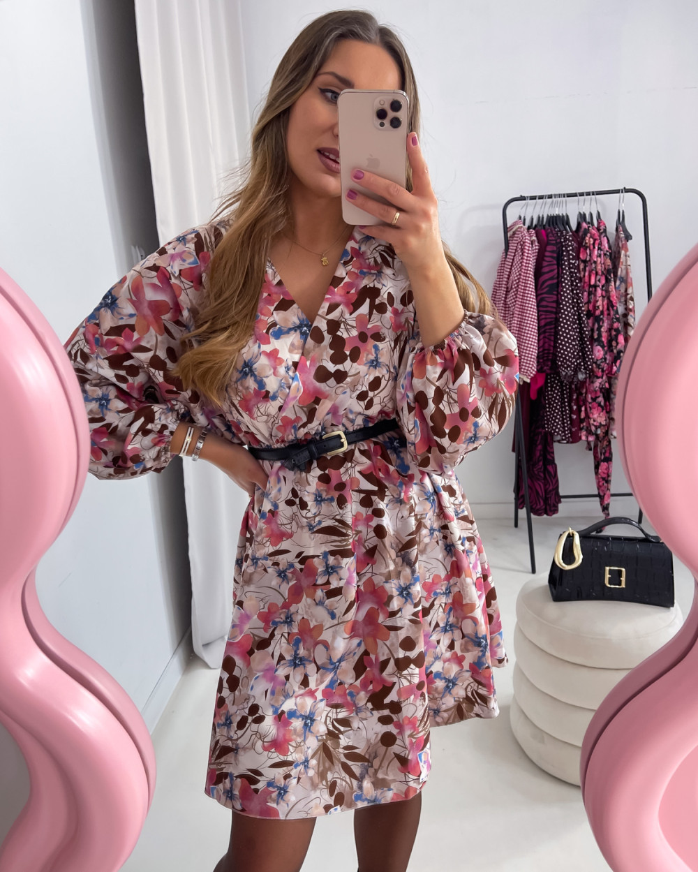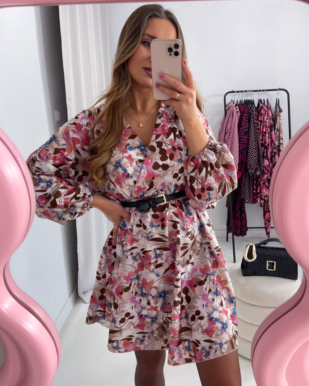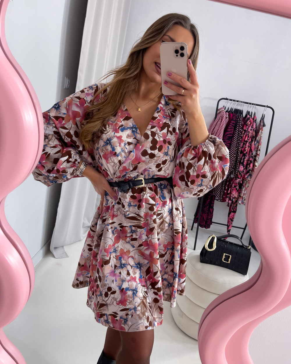 Wszelkie przedmioty użyte do sesji, w tym: paski, torebki, biżuteria itp. stanowią własność modelki. Nie są na sprzedaż i nie są dołączane do produktu.