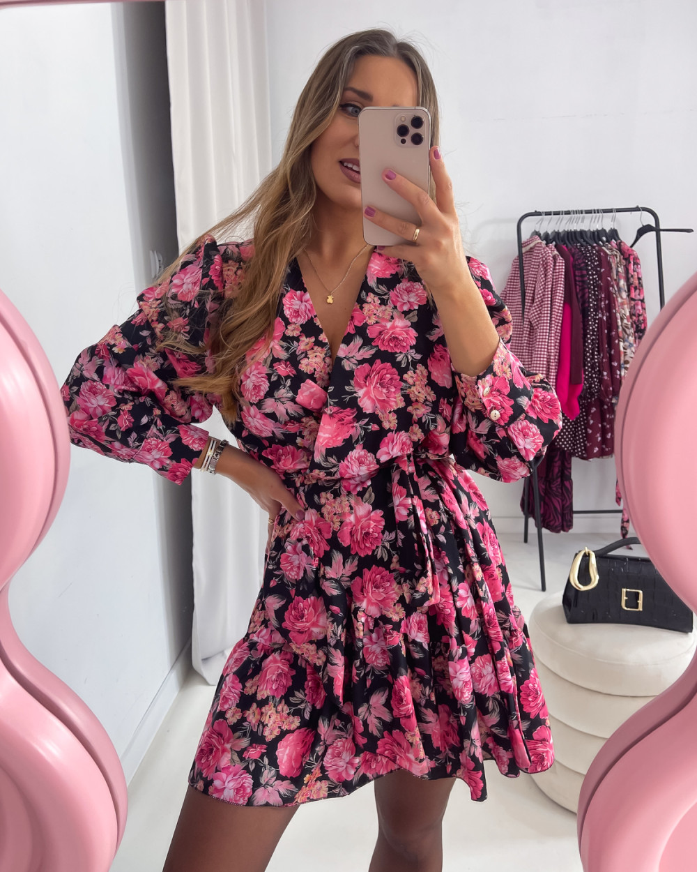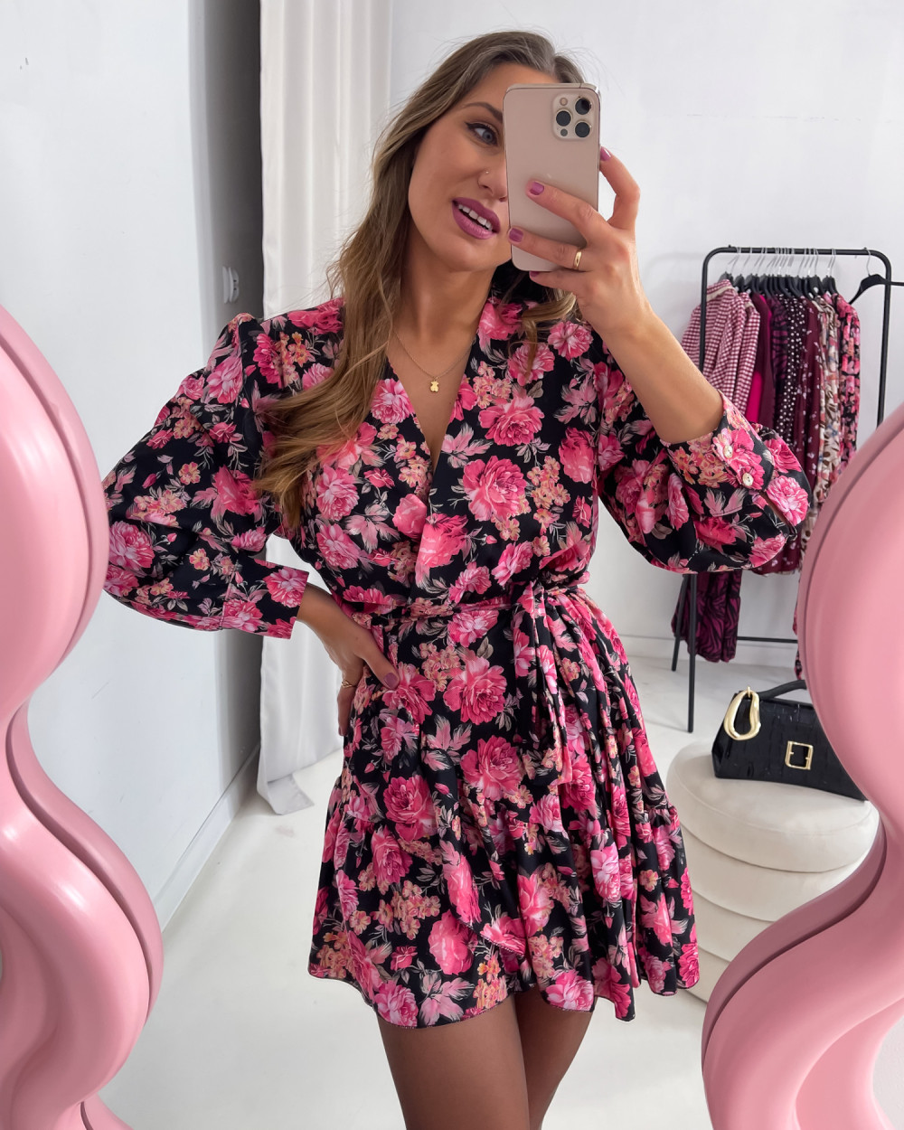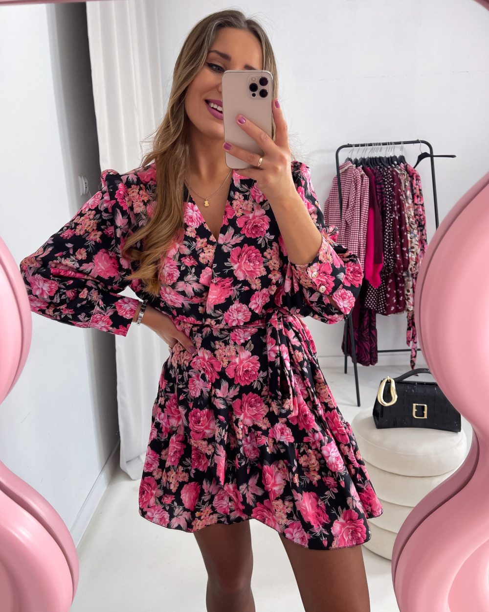 Sukienka o kroju mini W talii posiada pasem materiałowy, dzięki temu dopasuje się do każdej sylwetki. Rozmiar uniwersalny sprawdzi się u osób noszących na co dzień rozmiar XS,S, M, L. Sukienka zakładana jak szlafrok, z dekoltem V.