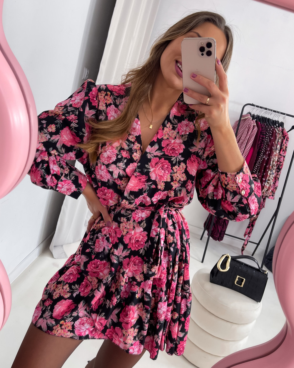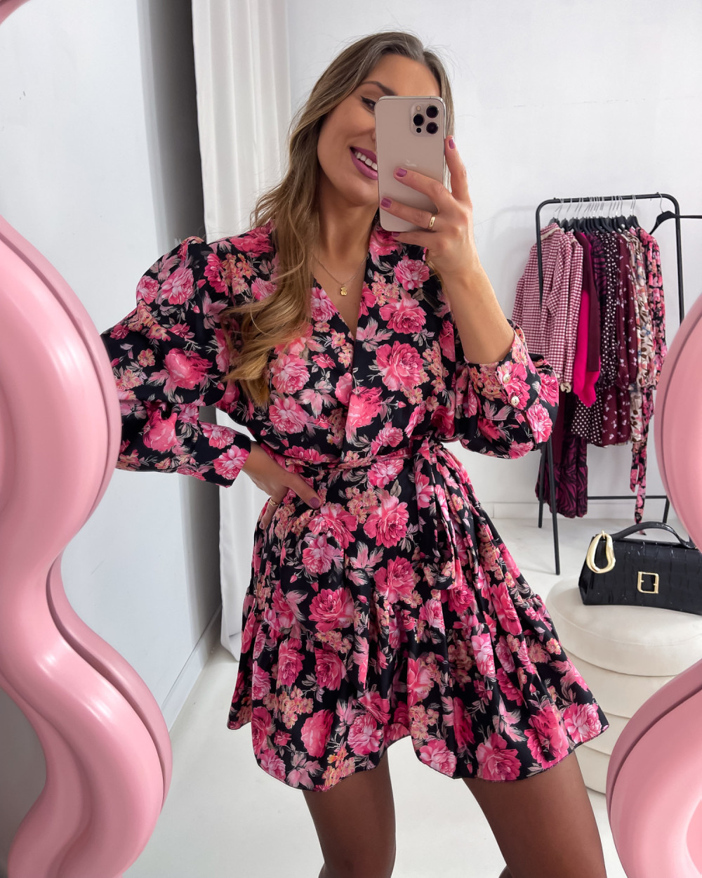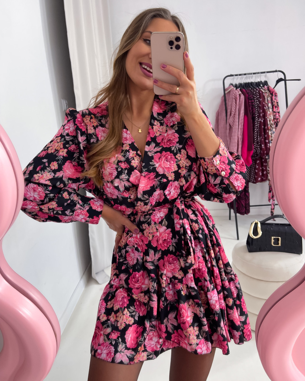Sukienka o kroju mini W talii posiada pasem materiałowy, dzięki temu dopasuje się do każdej sylwetki. Rozmiar uniwersalny sprawdzi się u osób noszących na co dzień rozmiar XS,S, M, L. Sukienka zakładana jak szlafrok, z dekoltem V.