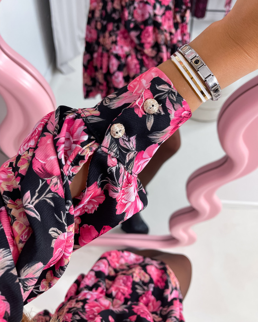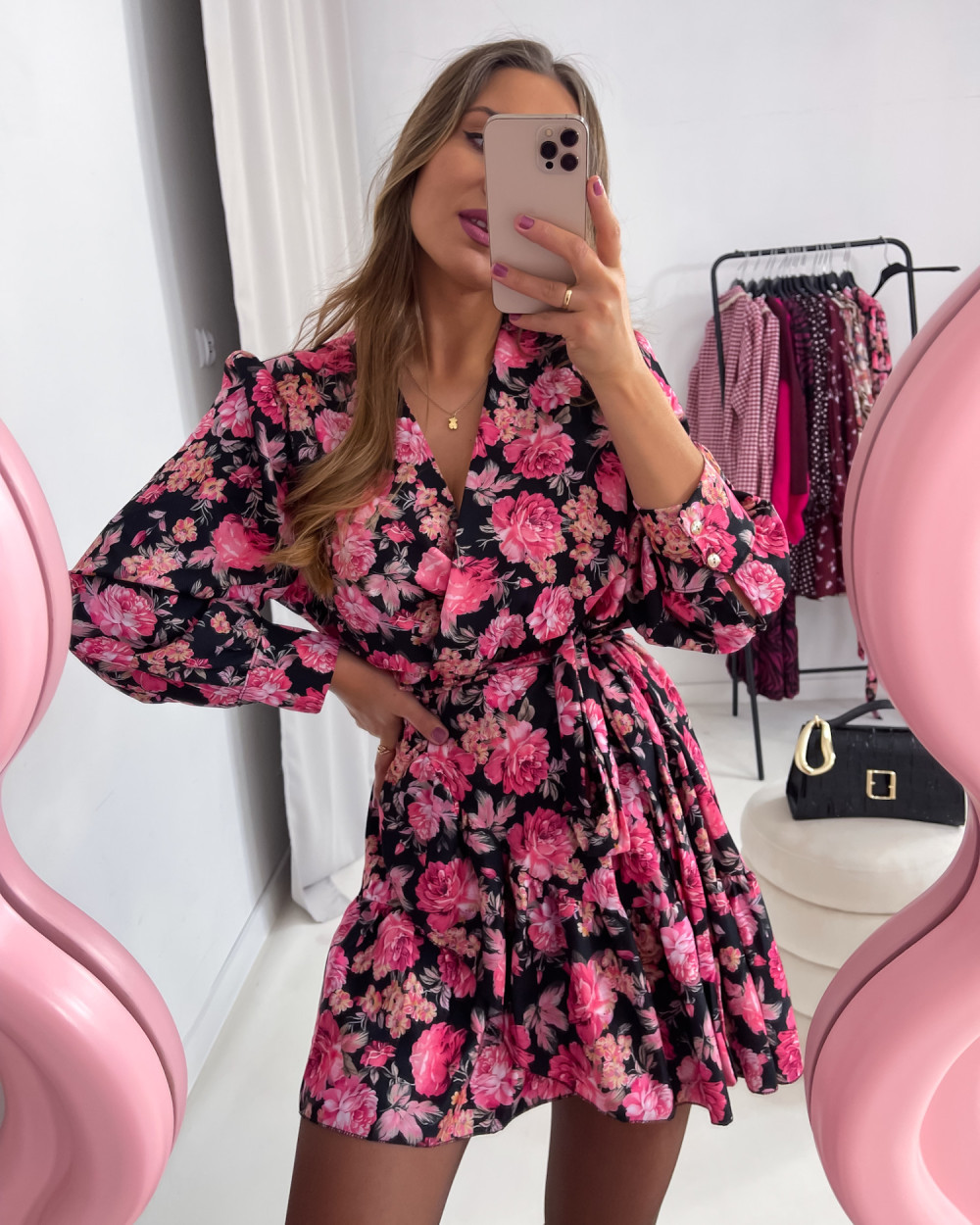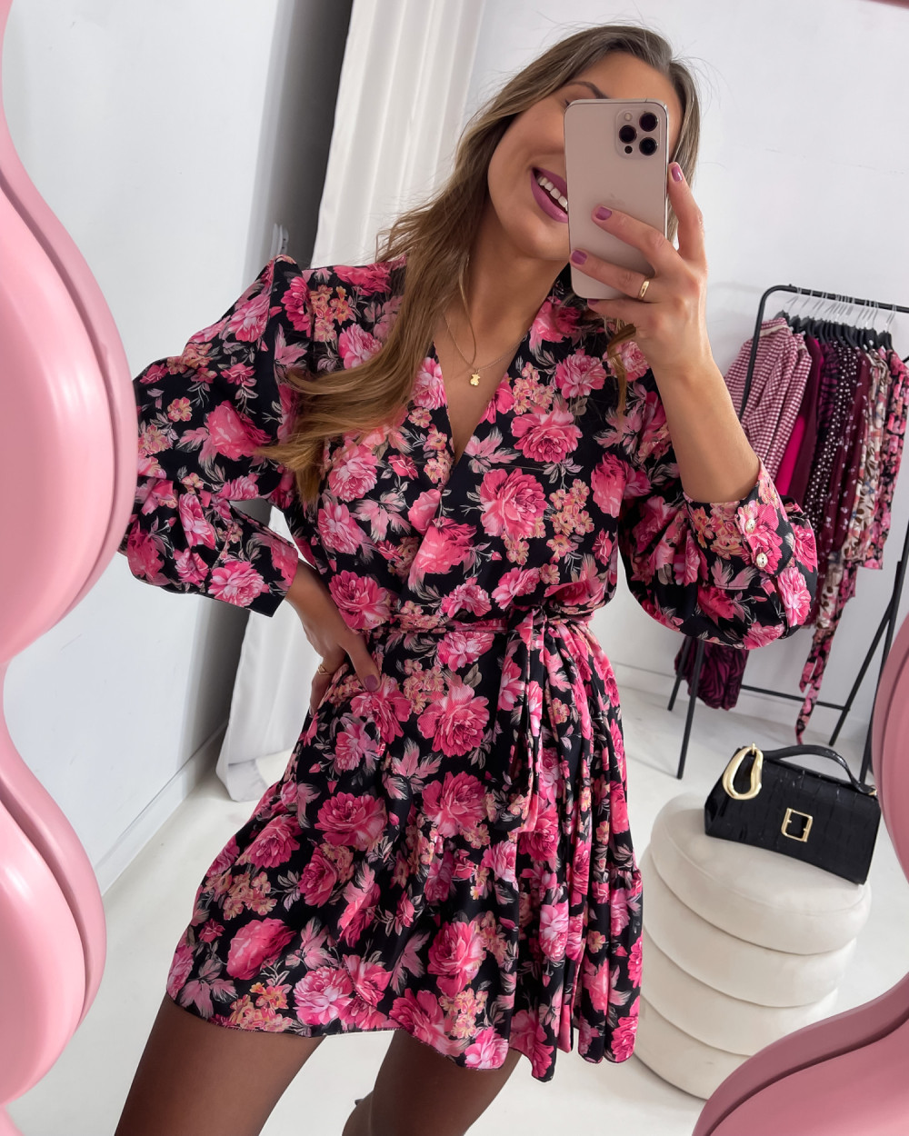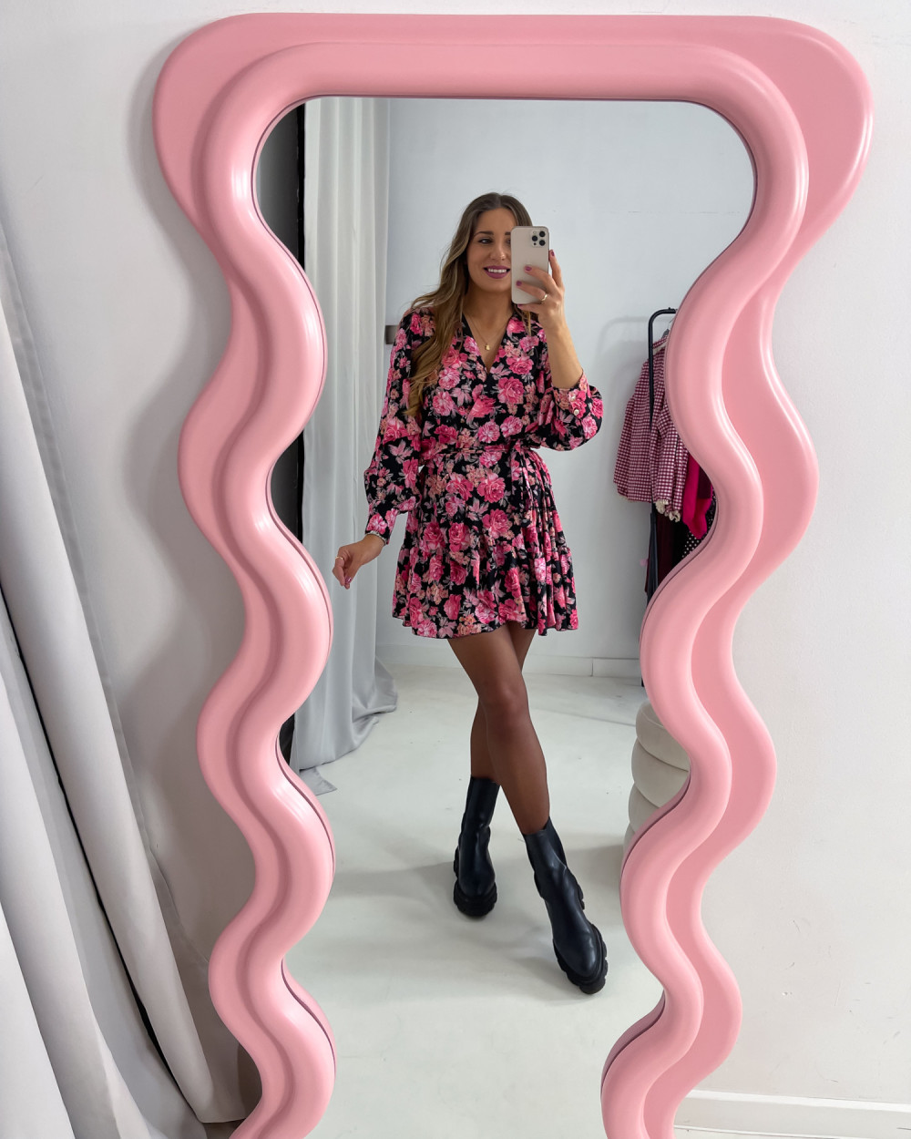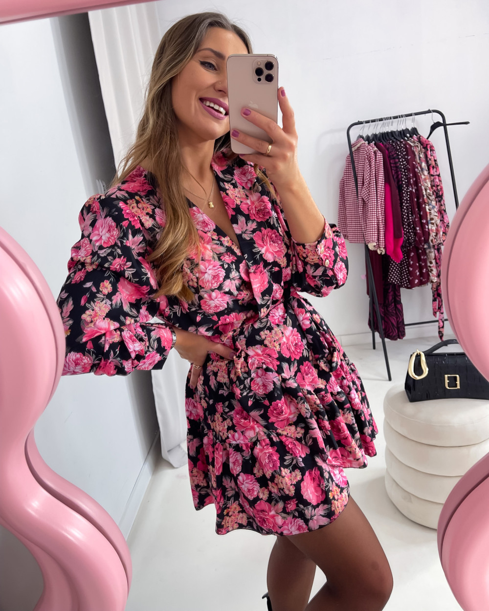 SUKIENKA ZOA Z DŁUGIM RĘKAWEM RÓŻOWE KWIATY