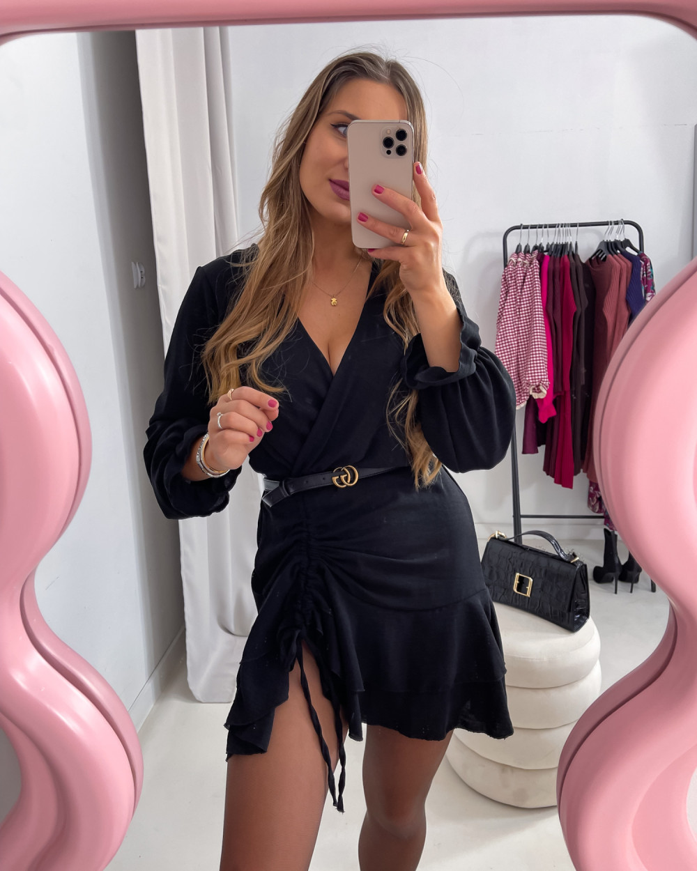 Sukienka o kroju midi z ozdobnymi odpinanymi guziczkami. W talii posiada gumkę, dzięki temu dopasuje się do każdej sylwetki. Rozmiar uniwersalny sprawdzi się u osób noszących na co dzień rozmiar XS,S, M, L.