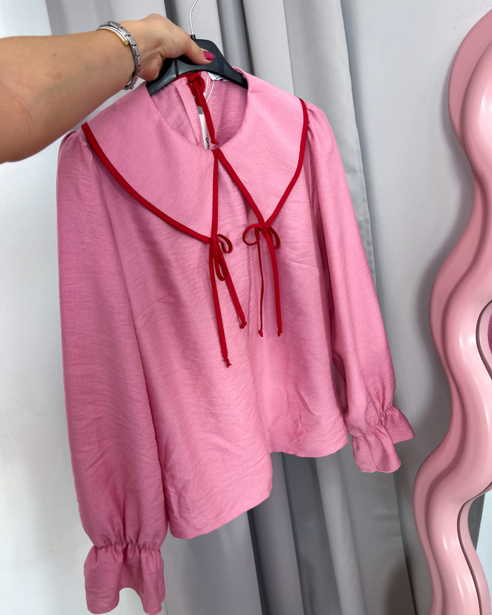 KOSZULA VESTI 100% WISKOZA Z KOŁNIERZEM PUDROWO RÓŻOWA CZERWONYMI WSTAWKAMI